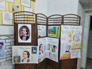 Copiii impreuna cu parintii, ghidati de scumpele educatoare, s-au adunat în miez de iarna să cinsteasca cu pietate memoria Luceafarului poieziei românești, care a sclipit deasupra lunii cu doua secole în urmă. La 15 ianuarie, in ziua de nastere a Marelui Poet Mihai Eminescu, pășim cu candela iubirii aprinsă în sufletele noastre în cel de al treilea mileniu al nemuririi sale.